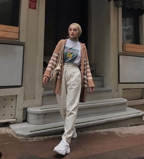 Bagi wanita yang mengenakan hijab pastinya yang ingin tampil chic dapat memilih outer berupa cardigan rajut di kondisi musim hujan saat ini. Gunakan cardigan bermotif simpel seperti stripes. Pilihan warna lembut seperti earthy tone juga dapat membuat penampilan lebih modis. Padukan cardigan dengan t-shirt dan trousers. Kemudian gunakan sneakers berwarna senada agar tetap terlihat simpel.