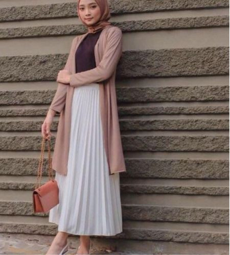 6. Masih dengan padu padan rok plisket, kali ini ditambah dengan outerĀ atau cardigan agar kamu merasa lebih leluasa dalam bergerak.
