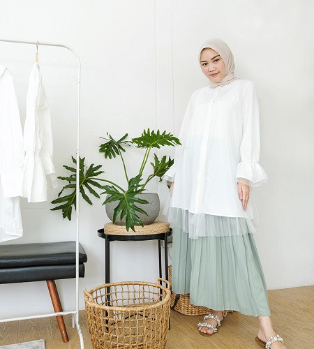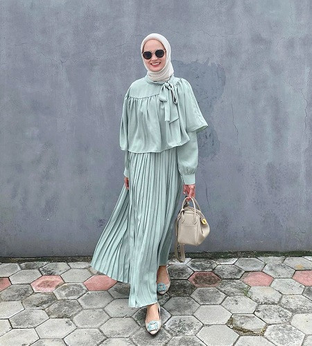 2. Jika ingin terlihat lebih segar dan ceria, coba dengan pakaian berwarna Sage Green Top dan Skirt, cukup klasik bukan.