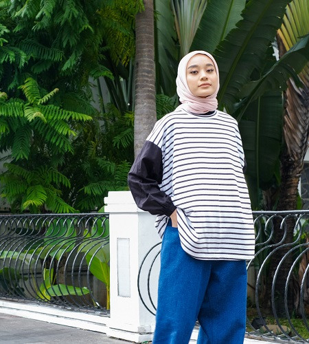 3. Motif hitam daan putih memang tidak pernah ada gagal untuk dipadukan dengan bawahan apapun. Cukup simple, mudah di mix and match, simple dan juga nyaman.