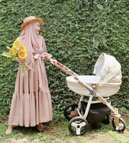 3. Pilihan baju gamis memang sangat cocok untuk ibu muda yang baru saja melahirkan anak, termasuk gaya hijab dari Dian Pelangi yang satu ini.
