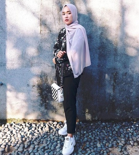 Gaya Pashmina sampir bahu ini cocok dikenakan di semua outfit. Kamu hanya menyampirkan salah satu sisi pashmina dan membiarkannya menjuntai menutupi dada.