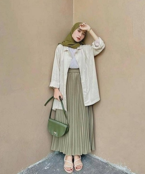 5. Rok plisket juga cocok dipadukan dengan kemeja. OOTD yang satu ini cocok Anda kenakan ke kampus jika masih bingung mencari mana outfit yang tepat.