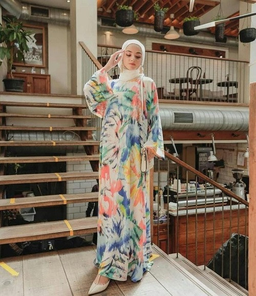 Tren tie dye cocok untuk dikenakan oleh siapapun dan jenis pakaian apapun lho. Untuk Anda yang ingin mengenakan tie dye namun tetap syar'i, Anda bisa menggunakan gamis seperti di atas ini. Pakailah pashmina berwarna netral agar penampilan Anda terlihat elegan!