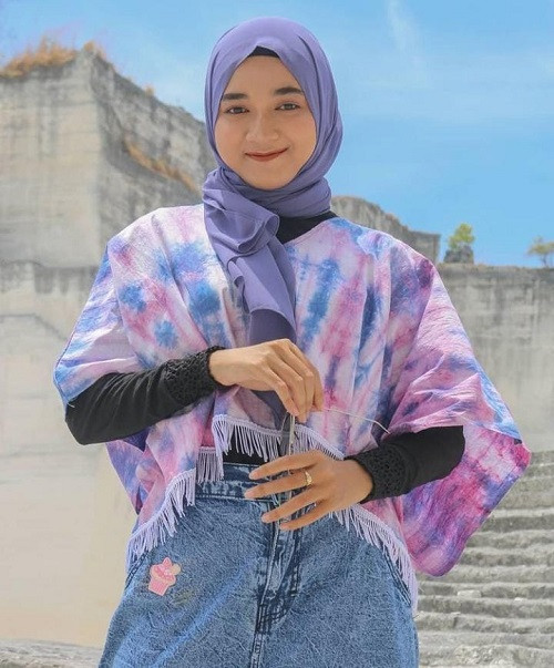 Jika lebih suka dengan baju lengan pendek kemudian memakai manset cocok juga kok. Padukanlah dengan celana jeans dan warna hijab yang selaras. OOTD hijab tie dye ini cocok untuk hangout bersama teman-teman Anda.