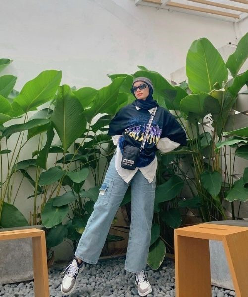 2. Agar tidak terlihat terlalu formal, kamu bisa mengenakan sweater oversized dan boyfriend jeans yang bewarna selaras. Pakailah sneakers agar terlihat catchy. Cocok untuk dipakai saat hangout bersama dengan teman.