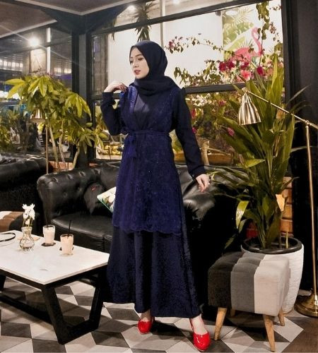 2. Jika kamu punya acara bukber formal, maka OOTD hijab ala Zahra Jasmine ini sangat cocok dipakai. Gamis berwarna biru tua serasi dengan hijab berwarna hitam.
