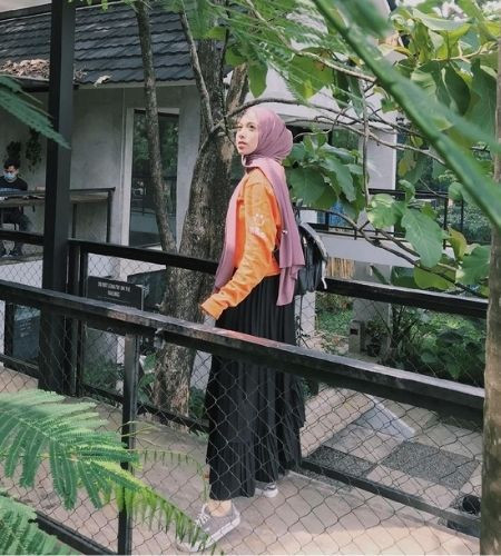 3. Senang untuk menghabiskan waktu di luar ruangan, terutama ngabuburit? Nah, OOTD hijab dari DJ Zahra Jasmine bisa kamu tiru. Perpaduan rok plisket dan atasan warna oranye ini sangat cocok sekali.