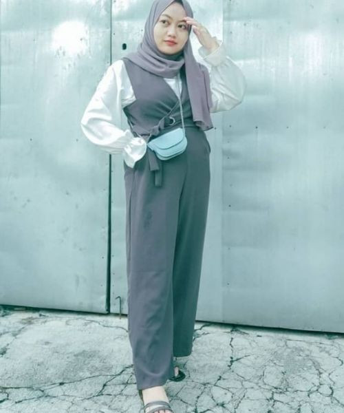 Blouse polos yang dipadukan dengan jumpsuit wara abu in membuat penampilan kamu terlihat elegan dan menarik. Sandal yang manis dengan slingbag kekinian membuat penampilan kamu tetap trendy.