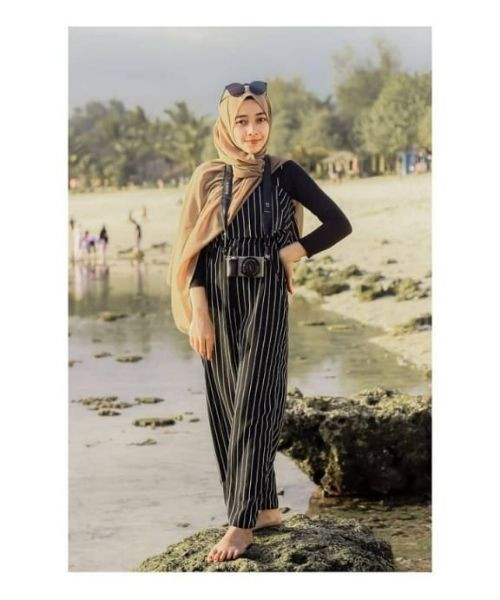 Model jumpsuit polos dan sederhana yang satu ini membuat kamu yang mengenakannya menjadi lebih simple. Look ini selain digunakan untuk jalan-jalan juga bisa digunakan untuk ke kampus.