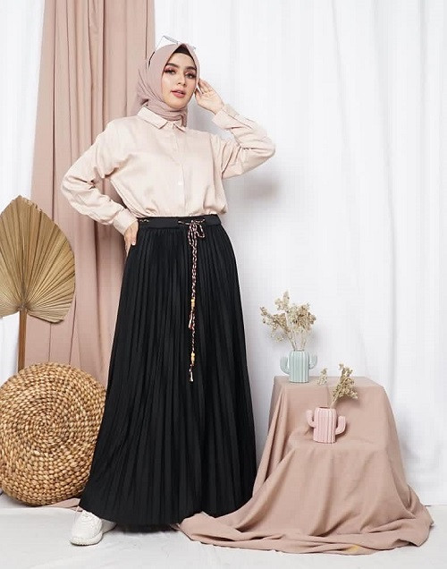 4. Kali ini rok plisket hitam dengan kemeja, yang sangat pas dijadikan OOTD ke kantor dan membuat penampilan semakin elegan dan feminim.