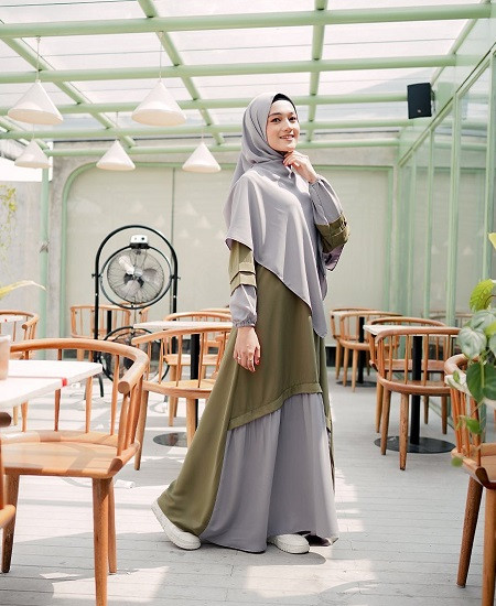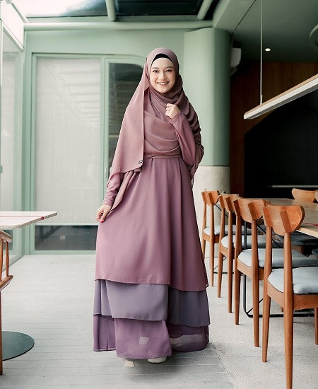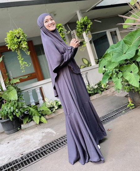 3. Untuk pakaian di rumah sehari-hari, kamu bisa meniru gamis seperti yang dipakai Jihan Salsabila. Selain nyaman, juga tetap menutup aurat dengan sempurna.