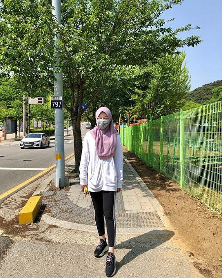 2. OOTD jogging ala Ayana Moon ini juga sangat sederhana, perpaduan celana legging dan atasan longgar bisa menutupi bagian belakang. Dan jangan lupa memakai masker untuk perlindungan tambahan di masa pandemi.