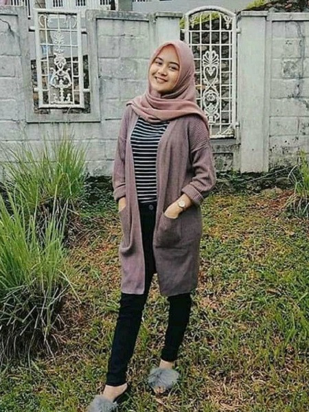 3. Jika kamu senang dengan gaya kasual, bisa mencoba memadukan cardigan rajut dengan celana jeans dan juga atasan kaus. Ini sangat cocok untuk dipakai di rumah atau jalan-jalan.