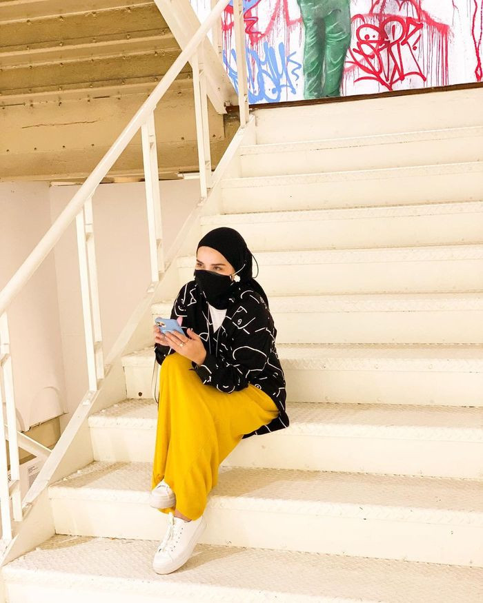 Blouse monokrom merupakan penampilan yang dinilai elegan oleh para hijabers. Tema blouse monokrom sangat mudah untuk dipadukan. Misalnya yang di gunakan Tasya Nur Medina ini. Ia mengenakan blouse motif hitam dengan motif abstrak serta line warna putih mengenakan rok berwarna kuning terang.