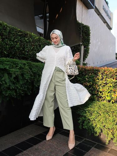 OOTD simpel kondangan untuk remaja yang terakhir, kamu bisa mengenakan long outer dengan celana. Pilih long outer dengan detail yang cantik dan padukan dengan high heels agar penampilan kamu tidak terkesan 'tenggelam.'