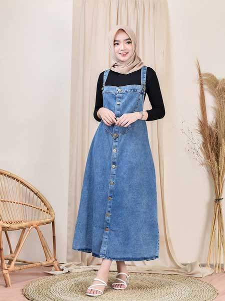 Jeans memang selalu menjadi penampilan yang tidak termakan zaman. Termasuk model overall yang satu ini. Kamu bisa menggunakan overall dress dari jeans dengan aksen front button ini bersama inner polos warna hitam. Penampilan ini cocok juga kamu gunakan untuk pergi ke kampus, ngantor, atau hangout bersama teman-teman. Sebagai alas kaki, kamu bisa memakai heels untuk kaki tampak lebih indah.