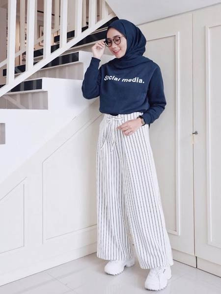 Celana motif stripe saat ini memang banyak disukai dan dipakai oleh para hijabers. Celana yang mempunyai motif garis-garisi ini, juga akan terasa nyaman terutama untuk kamu yang naik kendaraan umum mapun pribadi. Serta membuat aktivitas lebih terasa ringan dan juga nyaman, karena kita akan merasa terlindungi dengan sempurna.