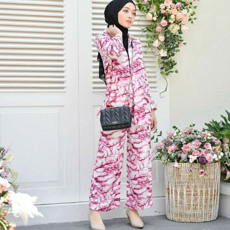 Motif tie dye senada warna merah ini bisa kamu jadikan referensi untuk OOTD kamu sehari-hari. Hal ini dikarenakan jika memilih motif dengan warna yang sama dan hanya menggunakan satu warna, maka OOTD kamu akan jauh dari kesan ramai dan norak. Jangan lupa untuk memilih warna hijab hitam polos agar penampilan kamu tetap seimbang.