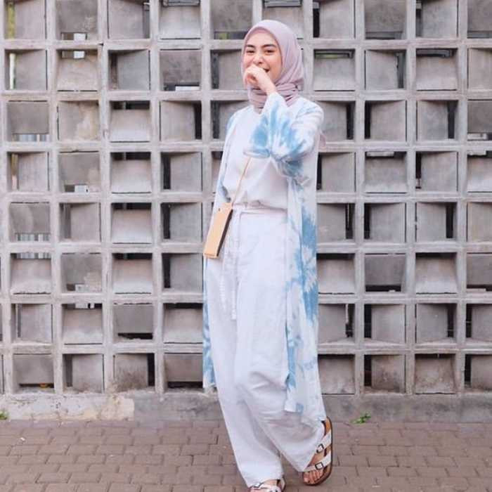 OOTD tie dye satu ini juga tetap membuat kamu tampak stylish dengan memilih cardigan tie dye berwarna kalem serta kombinasikan dengan baju dan celana polos yang membuat kesan simpel dan modis. OOTD motif tie dye ini cocok untuk digunakan saat bepergian luar, ke kantor, atau bahkan ke acara formal. Gunakan pula tas dan kerudung berwarna pastel.