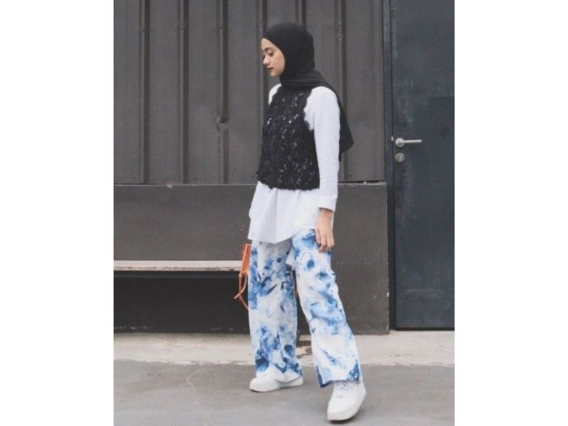 Kamu juga dapat memadukan sweater crop vest dengan blus dan bawahan tie dye culotte serta hijab pasmina. Agar terlihat semakin kasual dan santai, kamu juga bisa memadukannya dengan sneakers putih seperti penampilan Ayudia Bing Slamet yang satu ini