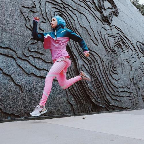 Olahraga tidak hanya menggunakan baju netral saja, OOTD Sporty ala Soraya Larasati yang satu ini dirinya mengenakan kaos polos pink dan dipadukan dengan crop jacket dua warna, yakni pink dan biru. Supaya tanpak senada dirinya mengenakan hijab sporty dengan warna biru. Tampilan stylishnya semakin lengkap dengan pemakaian legging pink bermotif simpel.