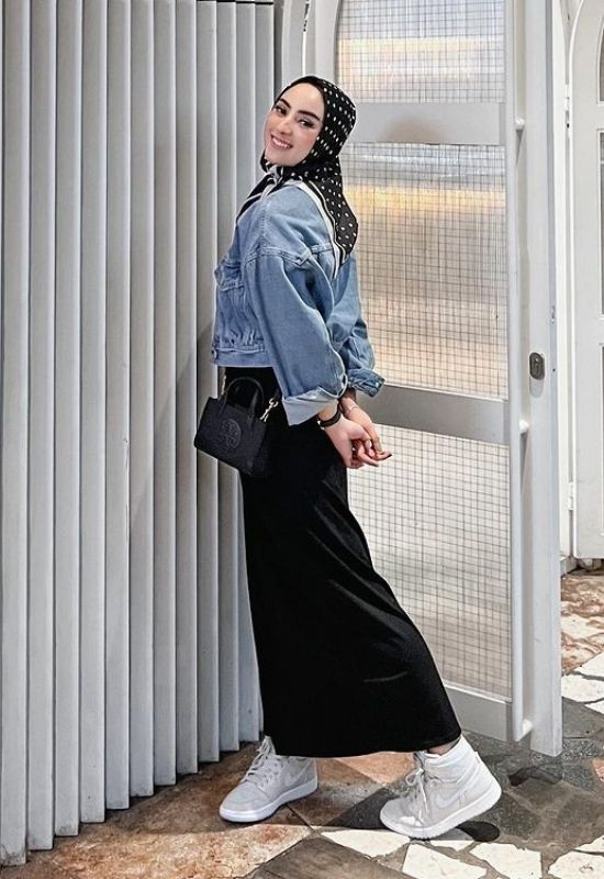 3. Untuk hangout baik bersama pasangan atau teman, denim memang sangat cocok sekali digunakan, meskipun dipadukan dengan bawahan rok dan sepatu kets.
