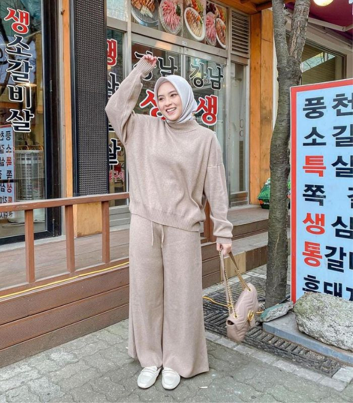 Outfit yang satu ini cocok buat Anda yang si anti-ribet! Gunakan sweater dan celana kulot dengan warna senada seperti ini bisa menjadi pilihan yang oke.