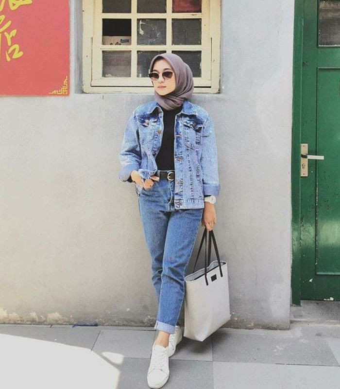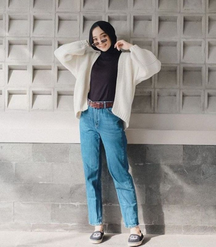 11. Terakhir, Kenakan black long sleeve t-shirt dibalut dengan broken white flowy knit cardigan dikombinasikan celana boyfriend jeans. Bikin gaya hijab-mu tampil modis.