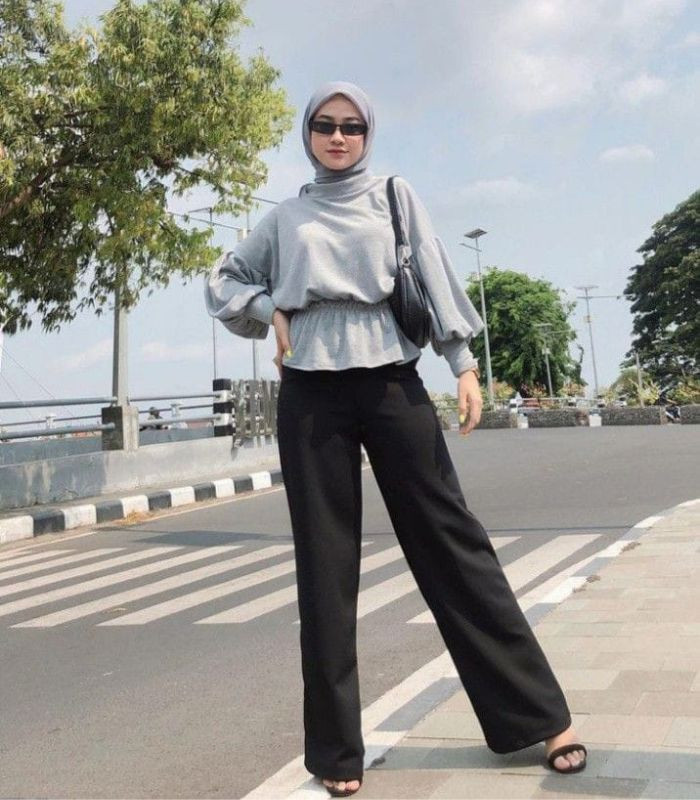 2. Kenakan blouse dengan model seperti ini dipadukan dengan hijab segi empat warna senada dan celana kulot hitam, bikin gaya hijab Anda makin stylish.