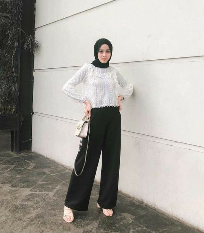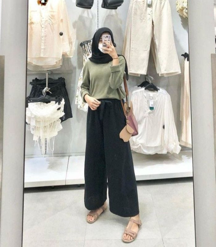 8. Gunakan oversized long sleeve t-shirt dipadukan hijab segi empat dan celana kulot berwarna senada. Gaya satu ini tampil simpel namun terlihat modis.