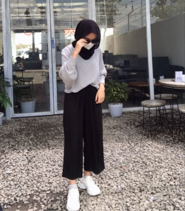 9 Inspirasi OOTD Celana Kulot Hitam Hijab, Tampil Stylish Kekinian