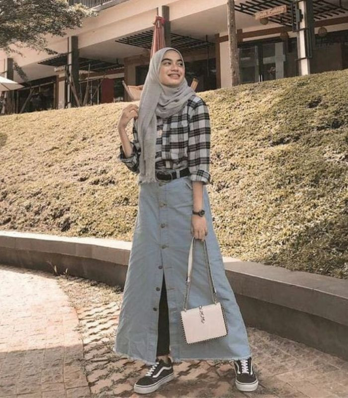 10 OOTD Hijab dengan Kemeja Kotak-kotak Tampil Keren Kekinian