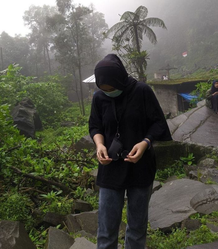4. Simpel saja dan nyaman saat digunakan, kombinasikan long sleeve t-shirt dibalut dengan oversized t-shirt dan hijab pashmina berwarna hitam senada, dipadukan dengan highwaist loose wide leg jeans.