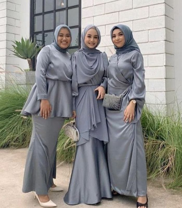 2. Gaya satu ini mengusung tema netral yang bernuansa gelap. Gunakan long dress satin seperti ini dengan aksen berbagai model seperti ruffle dibagian depan, aksen balon di tangan serta bagian bawah rok yang disesuaikan dengan selera.