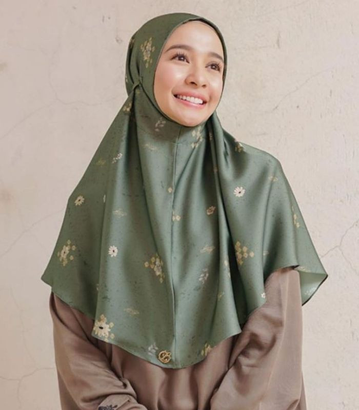 3. Tampil fresh look yang memberikan kesan eye-catchy. Padukan hijab bergo motif berwarna silver green yang dipadukan dengan blouse berwarna coklat. Bikin gayamu jadi lebih stylish walaupun di rumah.
