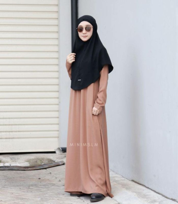 8. Gaya satu ini cukup simpel untuk dipadu-padankan dengan hijab bergo berwarna hitam serta minimal dress berwarna mud. Jadi bikin tampil stylish yang menawan.