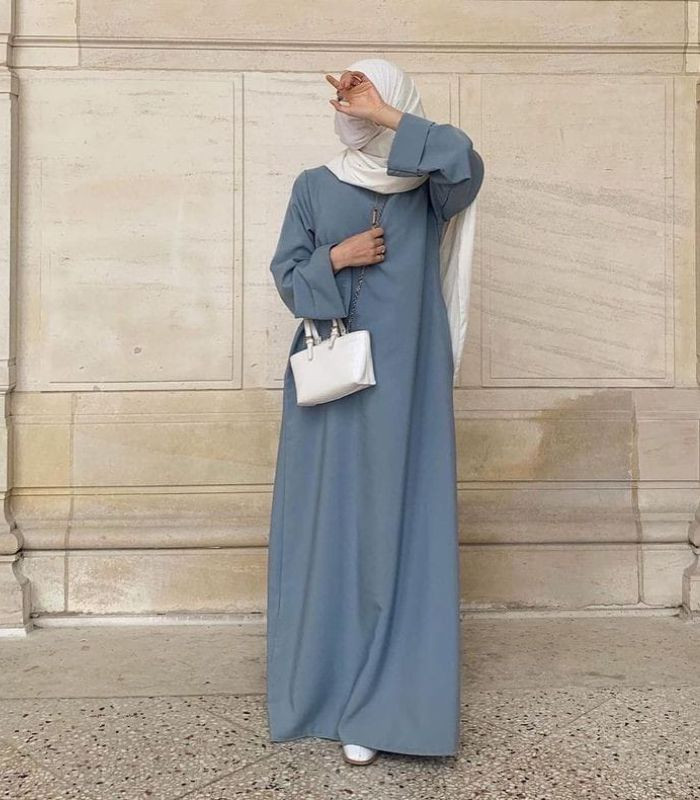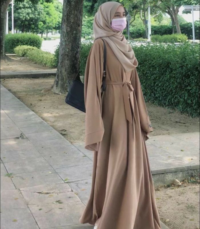 5. Mengusung tema nude kalem yang manis. Padukan abaya berwarna milo dengan detail tali pinggang yang memberikan kesan stylish dan pilih hijab pashmina dengan warna yang lebih cerah seperti soft beige satu ini. Bikin penampilanmu jadi terlihat chic.