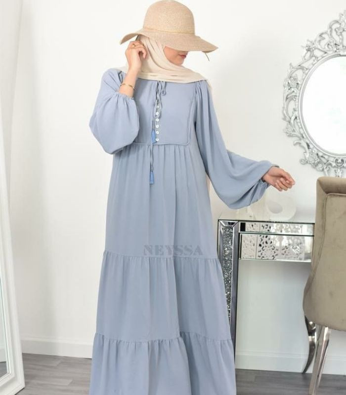 10. Terakhir, gunakan soft blue ruffle maxi dress dikombinasikan dengan hijab pashmina berwarna sand beige. Jadi bikin penampilanmu terkesan softgirl yang tampil ala-ala vintage style.