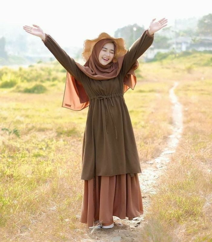 8. Padukan tunik army dengan aksen kerut padankan dengan hijab pashmina berwarna mocha yang senada dengan maxi skirt. Tampil simple namun tetap terlihat effortless!