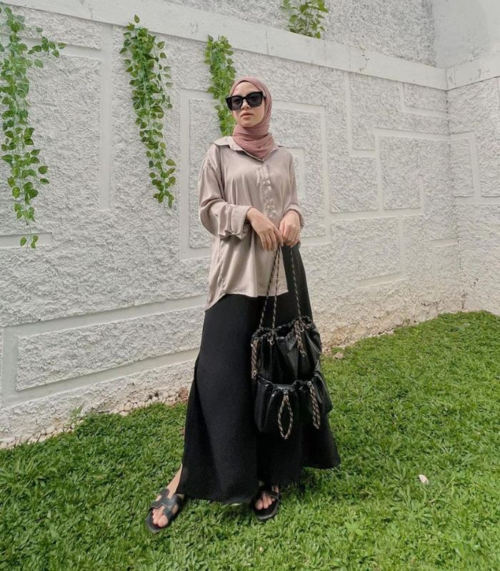10. Terakhir, menggabungkan kemeja lengan panjang warna coksu dengan maxi skirt hitam serta hijab pashmina warna milo merupakan padu padan outfit yang terlihat simple namun tetap terkesan eye-catchy yang menarik!