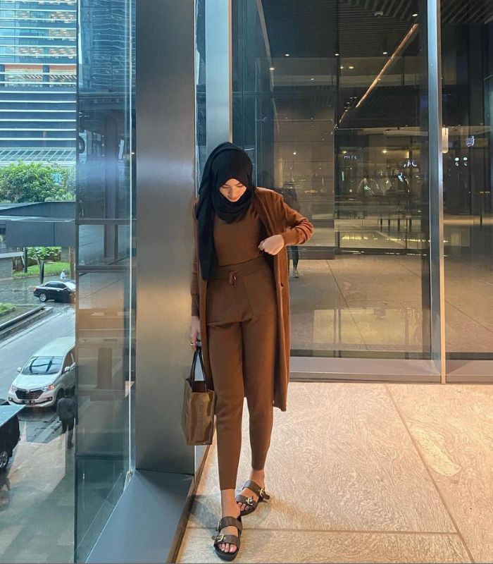 8. Padukan inner manset, slim-fit pants serta hijab pashmina berwarna serba hitam dibalut dengan denim jacket dijadikan sebagai outer dan sneakers putih, outfit satu ini cocok juga dikenakan untuk ke kampus.