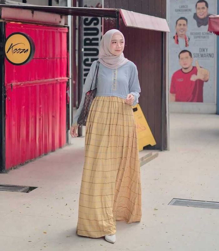 7. Mengusung konsep feminin yang anggun sekaligus sporty! Ia memakai dress two tone kombinasi warna kuning dan biru dipadukan dengan hijab pashmina berwarna baby pink, jadi bikin penampilan makin terlihat cerah!