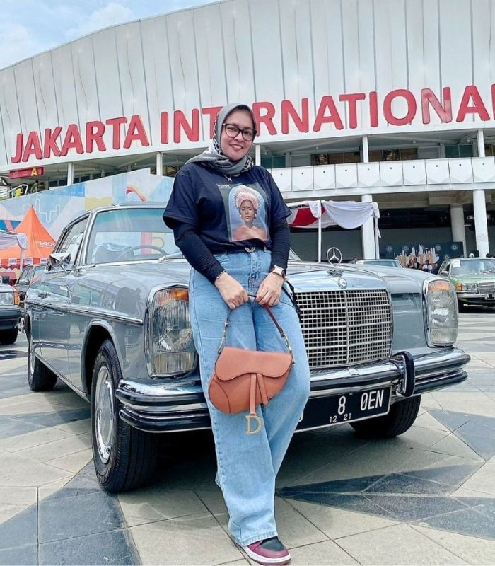 6. Gunakan inner dibalut t-shirt bergambar warna hitam senada dipadukan dengan celana jeans serta hijab segi empat bermotif, ditambah sneakers dan hand bag andalanmu, bikin penampilan makin kekinian banget!