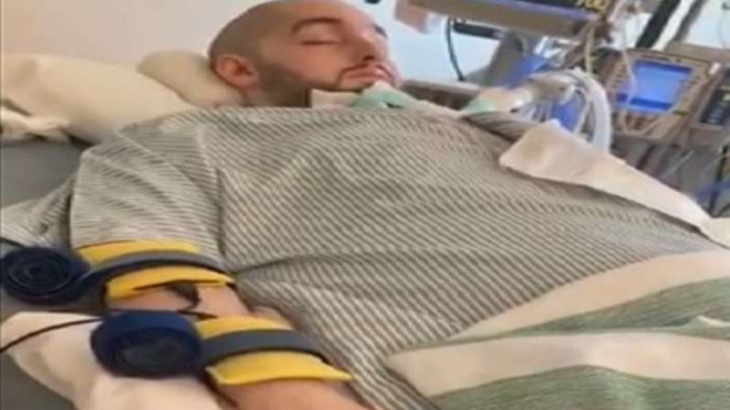 Pangeran Al-Waleed bin Khalid Al-Saud menggerakkan tangannya, ketika seseorang berbicara kepadanya di samping tempat tidur.