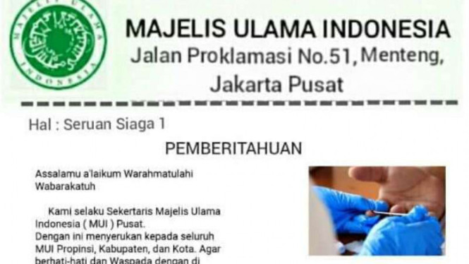 Surat tersebut menggunakan kop surat MUI.