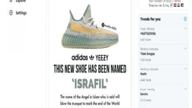 Heboh, Sepatu Adidas dengan Nama Malaikat Israfil