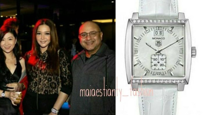 *_Maia Estianty kembali menunjukkan penampilan elegannya dengan jam tangan berlian Chopard senilai Rp1,7 miliar di resepsi pernikahan putranya, Al Ghazali, dan Alyssa Daguise.*_