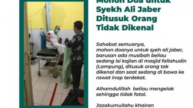 Penusukan dilakukan oleh orang tidak dikenal terhadap Syekh Ali Jaber.
