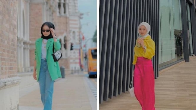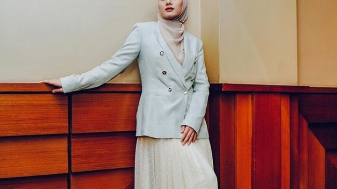 Direktur Utama (Dirut) Pertamina, Nicke Widyawati terlihat sangat memukai dengan OOTD hijab yang sangat kece saat fashion show di acara pembukaan SMEXPO 2022.